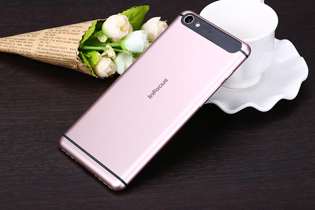 Nếu chỉ nhìn sơ qua mặt lưng thì INFOCUS gần như giống với chiếc iPhone 6 từ thiết kế bo cong, đường viền và cả dải anten. Tuy nhiên điểm đắt giá nhất của iPhone 6 là màn hình cong 2.5D thì ở INFOCUS không hề có.